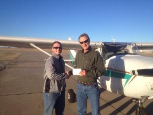 12/12/2015 New Private Pilot Jeff Barnes. The ceilings lifted enough today for Jeff to complete his private pilot in our Cherokee 140. Jeff is an avionics specialist for Field Aerospace in OKC.
