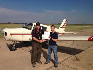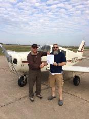8/15/15: first airplane solo for Bret Hagler. Bret is an aeronautical engineer with Boeing at Tinker and has a helicopter private certificate.